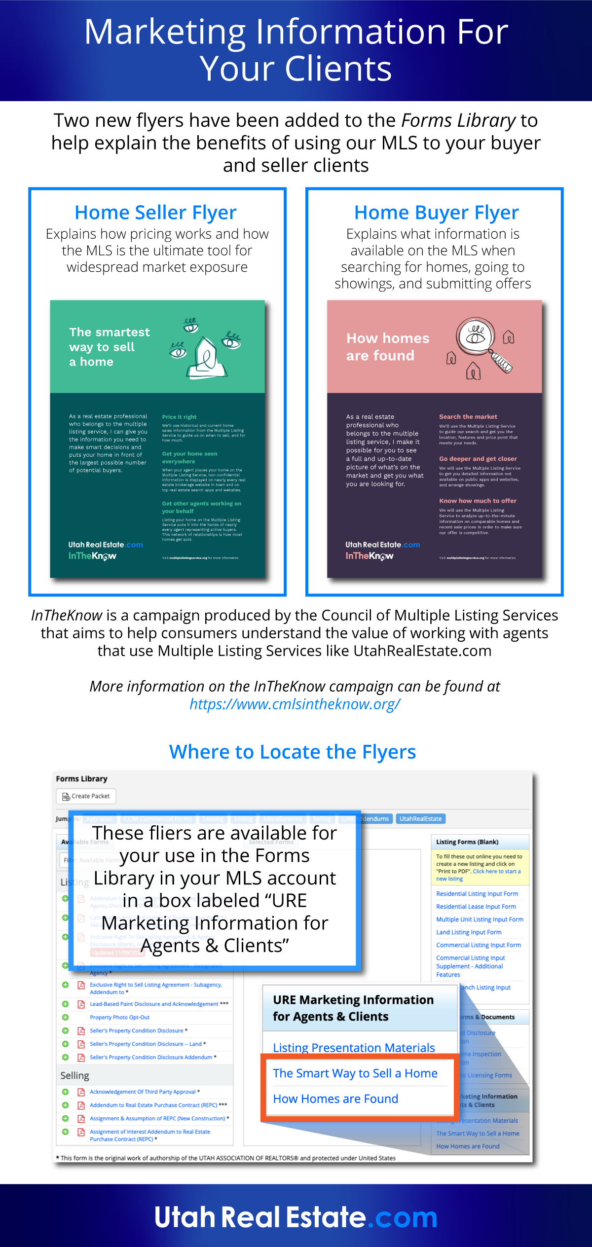 Flyers for your listing presentations explaining how you utilize UtahRealEstate.com to help sell and find homes have been added to the UtahRealEstate.com Forms Library page.